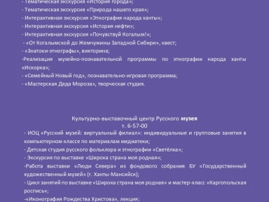Друзья, напоминаем, что в Музейно-выставочном центре и Культурно-выставочном центре Русского музея в Когалыме продолжает действовать Пушкинская карта.
