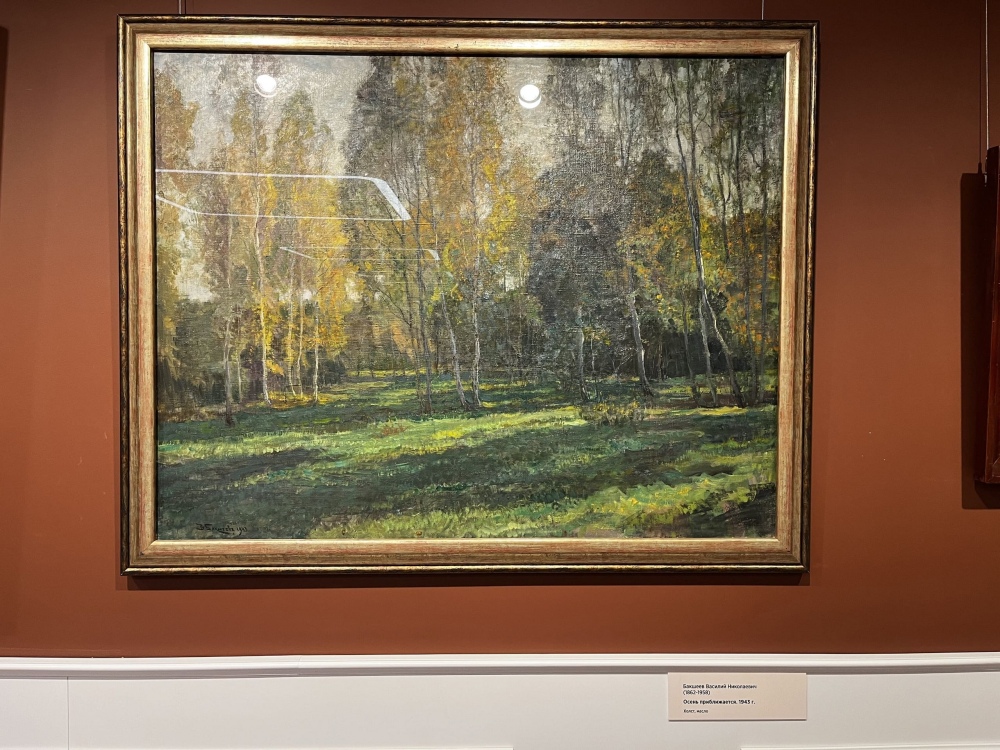 Василий Николаевич Бакшеев — художник, способный перенести зрителя в особый мир чувств и эмоций. Его полотно «Осень приближается» (1943), будто остановленное мгновение, отражает хрупкость перехода природы из одного состояния в другое.