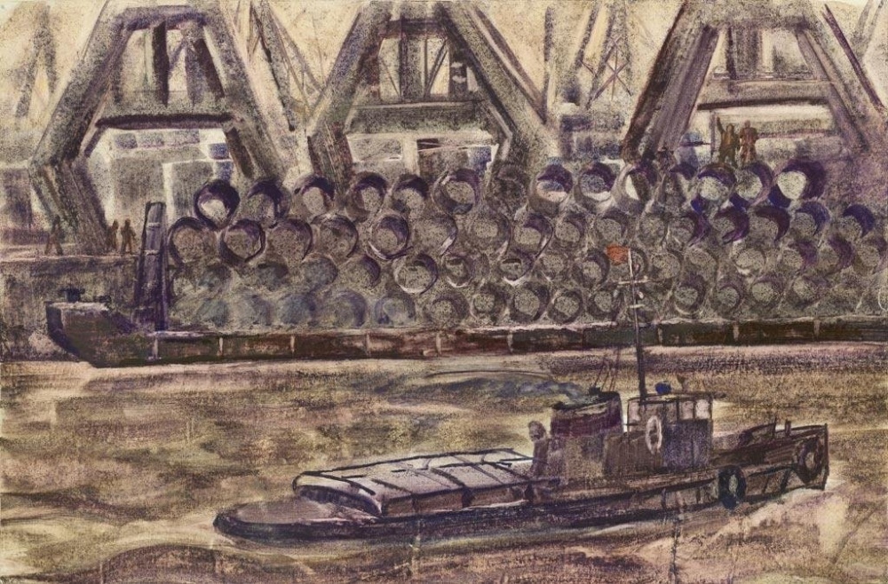 Акварель Анатолия Ильиных «В Тобольском порту» (1979), которую вы видите на фотографии, рассказывает как раз о периоде бурного промышленного развития региона.
