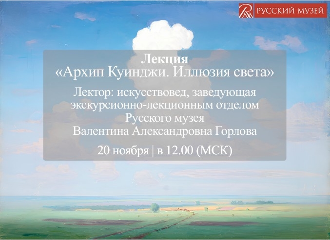 20 ноября в 14:00 состоится онлайн-лекция В.А. Горловой, приуроченная к выставке Русского музея «Архип Куинджи. Иллюзия света»