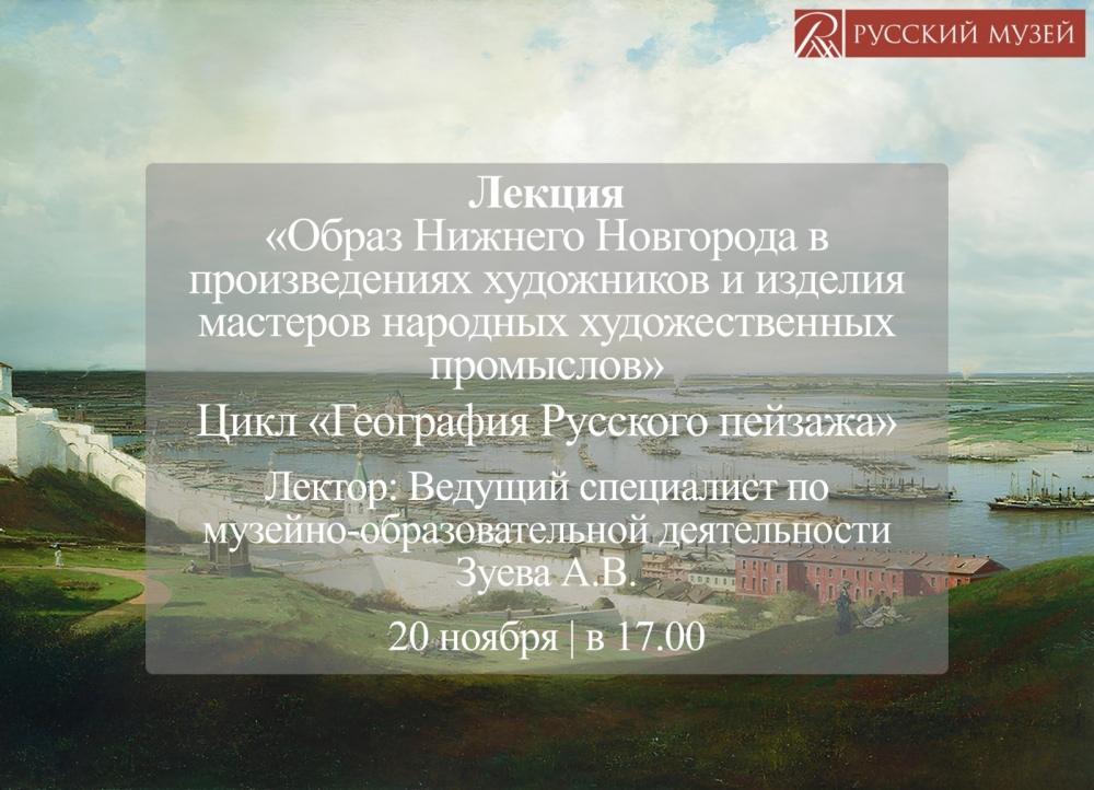 20 ноября в 17:00 пройдет онлайн-лекция «Образ Нижнего Новгорода в произведениях художников и изделия мастеров народных художественных промыслов»