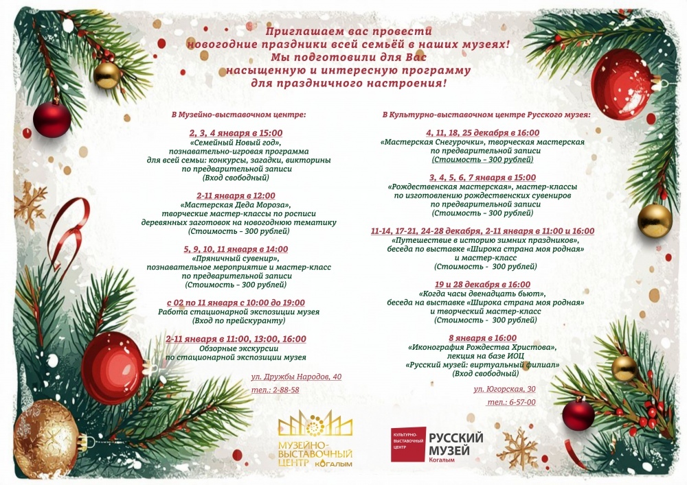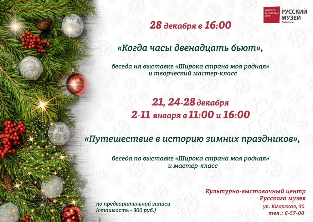 Приглашаем всех провести новогодние праздники вместе с Музейно-выставочным центром и Культурно-выставочным центром Русского музея!