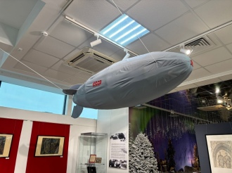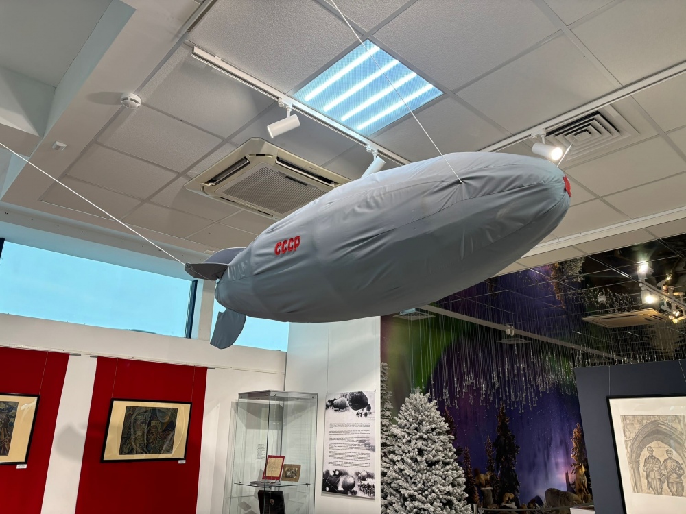 На нашей выставке представлена уменьшенная копия советского аэростата, а на графических листах советских художников отражена действительность тех страшных дней.