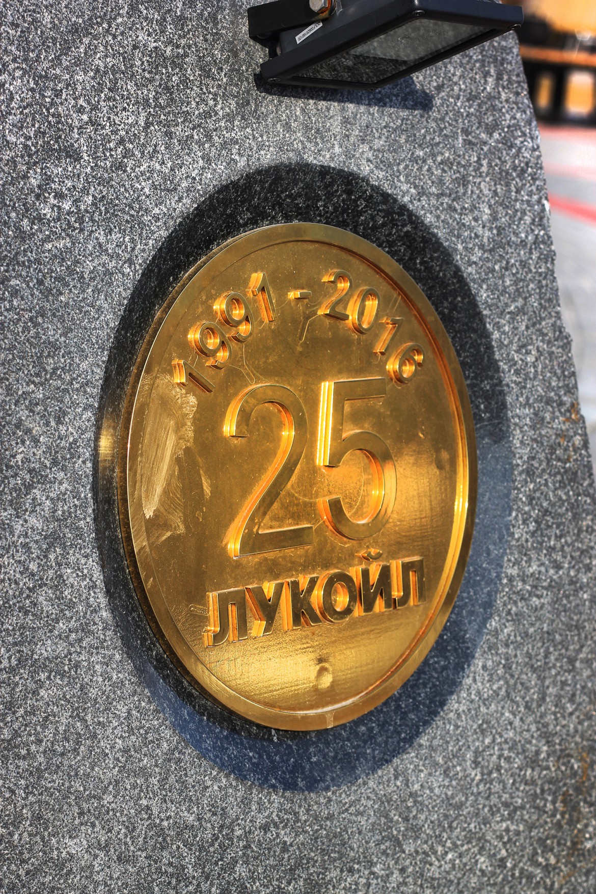 25 капель нефти символизируют четвертьвековой юбилей Компании «ЛУКОЙЛ» и трудовые подвиги нефтяников Западной Сибири. Высота объекта – 8 метров.
