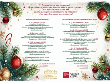 Приглашаем всех провести новогодние праздники вместе с Музейно-выставочным центром и Культурно-выставочным центром Русского музея!