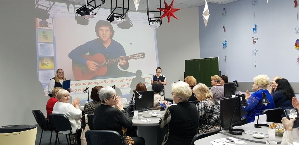 Пока шла подготовка к открытию вечера, все присутствующие могли насладиться музыкой Владимира Высоцкого, потом гостям был продемонстрирован краткий документальный фильм о жизни и творчестве певца. После просмотра фильма ведущие зачитали несколько строк из стихотворений Владимира Высоцкого и рассказали о значимых моментах жизни актёра. Далее гостям вечера было предложено поучаствовать в викторине и вспомнить интересные биографические факты и яркие моменты в творчестве Владимира Семёновича Высоцкого. Викторина содержала в себе много интересных вопросов, на которые гости с удовольствием отвечали и обсуждали спорные моменты. Вечер проходил в дружеской и легкой атмосфере. Одна гостья, под впечатлением от увиденного, вдохновленно прочитала всем присутствующим стихотворение, посвященное Владимиру Высоцкому. Подобных стихов великое множество, так как его творческая жизнь многих подталкивала на написание стихов. Жизненный путь Владимира Высоцкого — это более 800 песен и стихов, 20 ролей в театре и около 30 ролей сыгранных в кино, что очень впечатляет и вызывает огромное уважение.