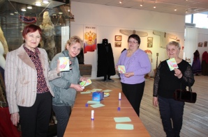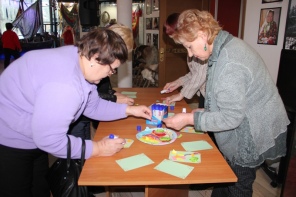 Затем дамы поучаствовали в мастер-классе по изготовлению открытки к празднику 8-е Марта. Несложные элементы и простая техника аппликации помогла изготовить милые открытки к весеннему празднику.