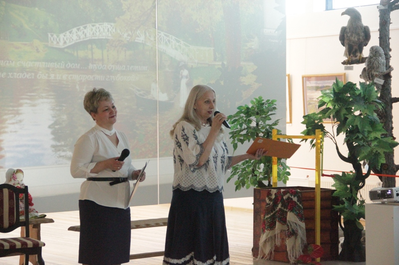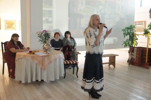 Чистый, звонкий голос Л. А. Домбровской, руководителя Студии «Криница», передал широту бескрайних просторов России, благоухание ландышей и сирени. Небольшая мизансцена «обустройство дачи» познакомила с дачными традициями XIX века. Одна из таких традиций - музицирование. Следуя этому занятию, участницы исполнили несколько хороших русских песен: «Под окном черемуха колышется…», «Разговоры…», «Погода разгулялась». Все пространство музея погрузилось в мир музыки и художественного слова.