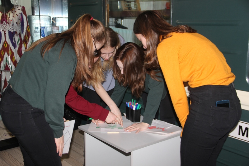 Затем, когалымские восьмиклассники активно включились в игру-квест «Портрет», закрепляя уже полученные знания. Интеллектуальная игра позволила не только проверить ребятам свои знания, но и проявить творческие способности. С огромной любовью было выполнено задание по созданию плаката, посвященного 120-летнему юбилею Русского музея. Все участники с заданиями справились на «отлично».