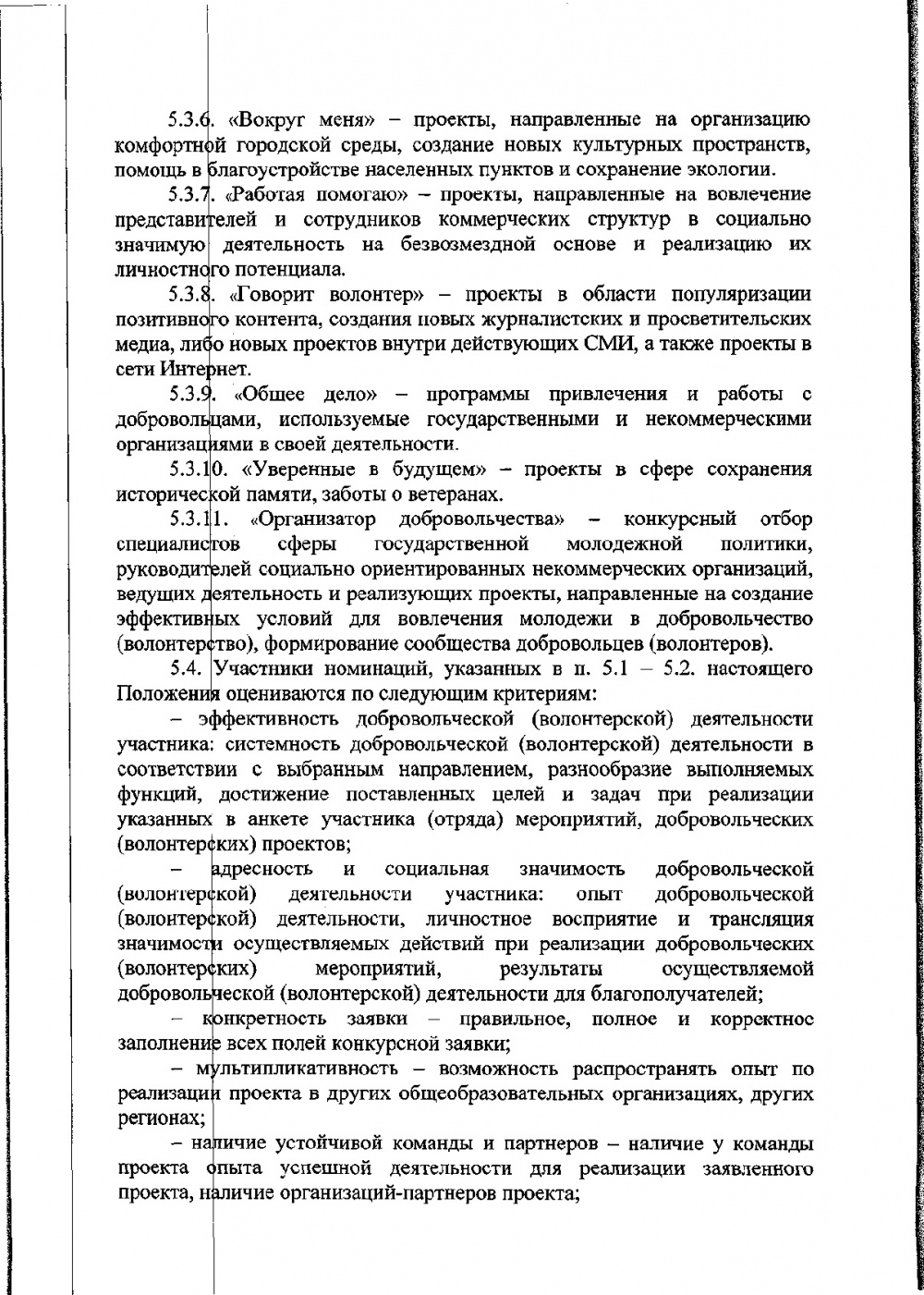 Конкурс среди проектов социально-ориентированных некоммерческих организаций и юридических лиц, осуществляющих деятельность по развитию добровольчества, волонтёрских центров, созданных на базе образовательных организаций, а также общественных объединений без образования юридического лица проводится по номинации «Волонтёрский центр».