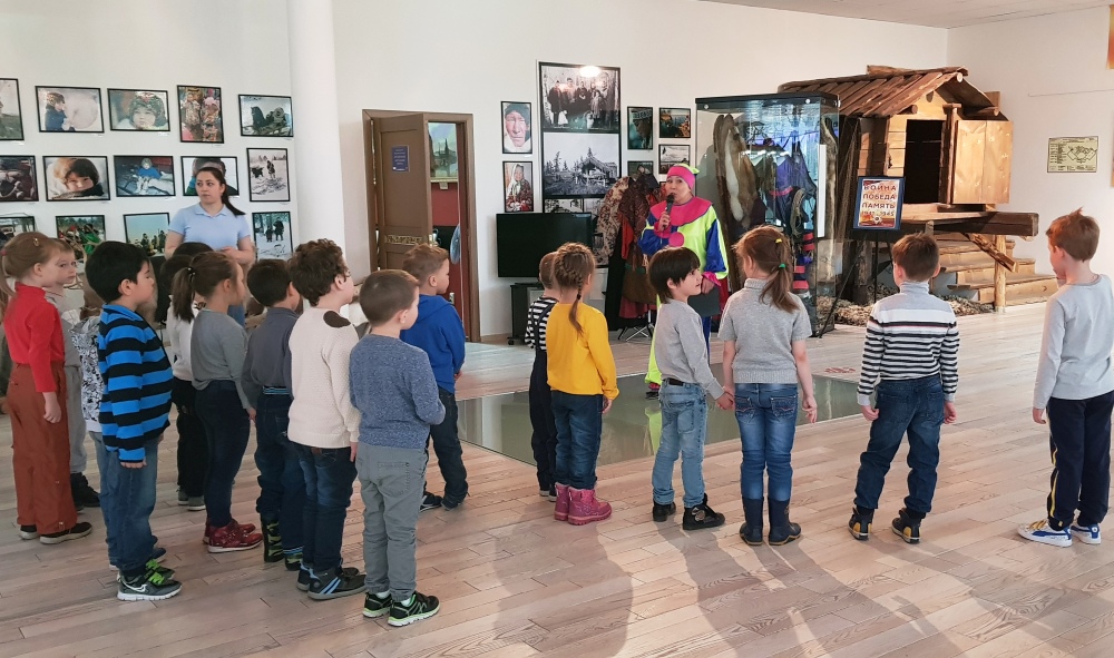 На входе в музей детей встречал весёлый Петрушка, который поздравил их с праздником и рассказал детям, что он означает.
