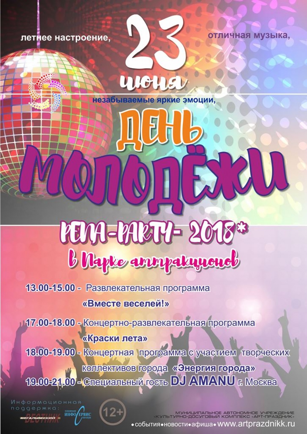 Приглашаем Вас посетить праздничные мероприятия, приуроченные к празднованию Дня молодёжи.