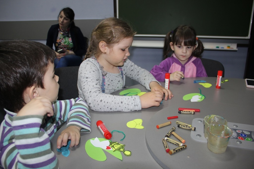 Встречу продолжил мастер-класс по изготовлению интерьерного украшения «Светлячок». Используя подготовленные образцы, восковые мелки и клей, дети своими руками изготовили подвеску «Светлячок».