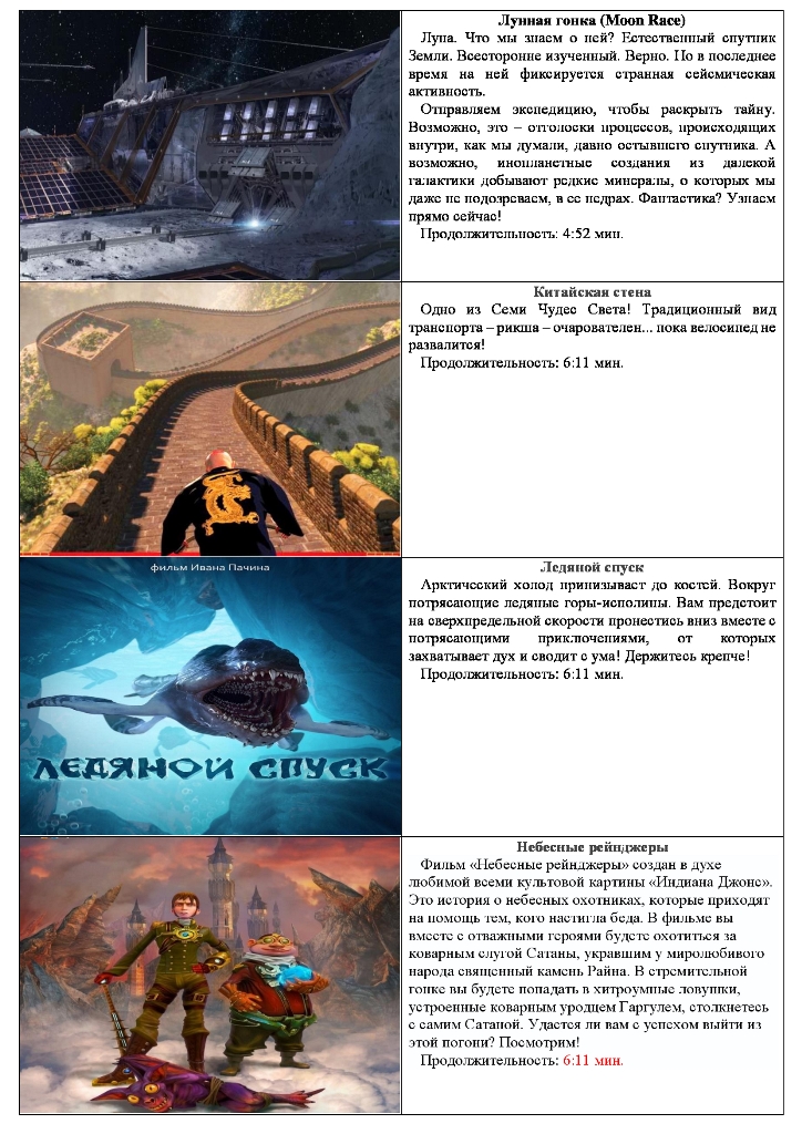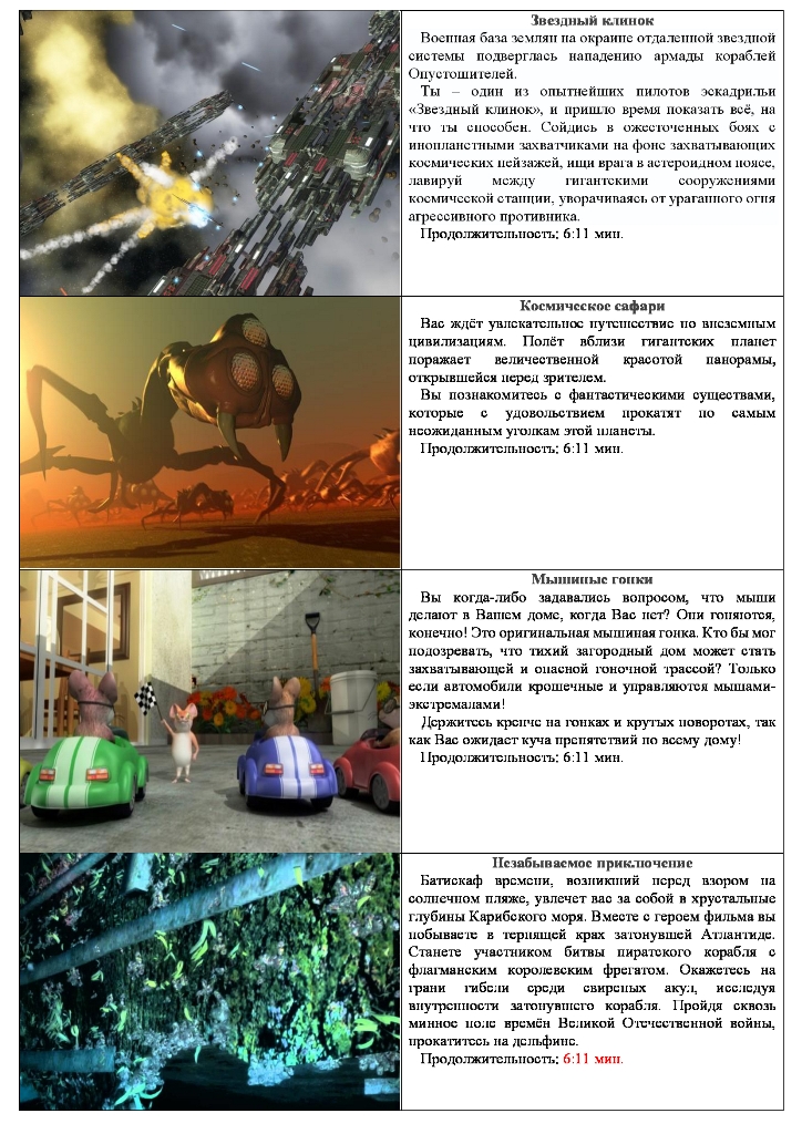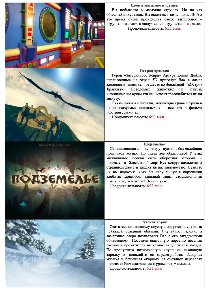 Путешествия под водой, спуск с крутых горок, гонки на квадроциклах, путешествие в подземелье и многое другое! Яркие эмоции ждут Вас.