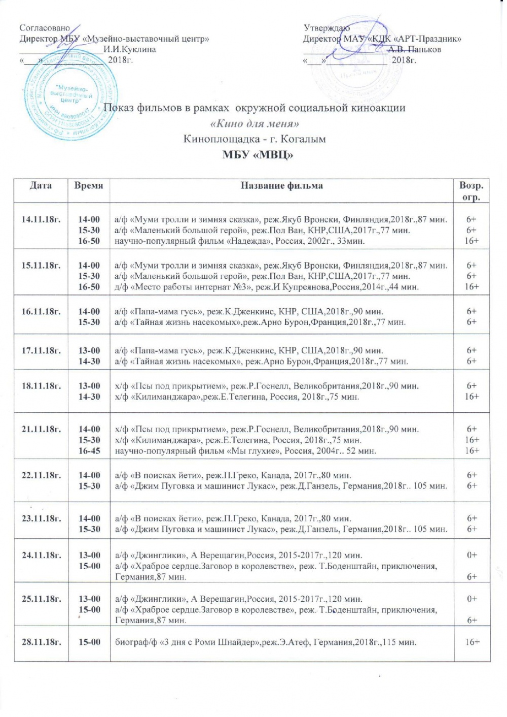 Подробнее с расписанием кинопоказов можно ознакомиться ниже.