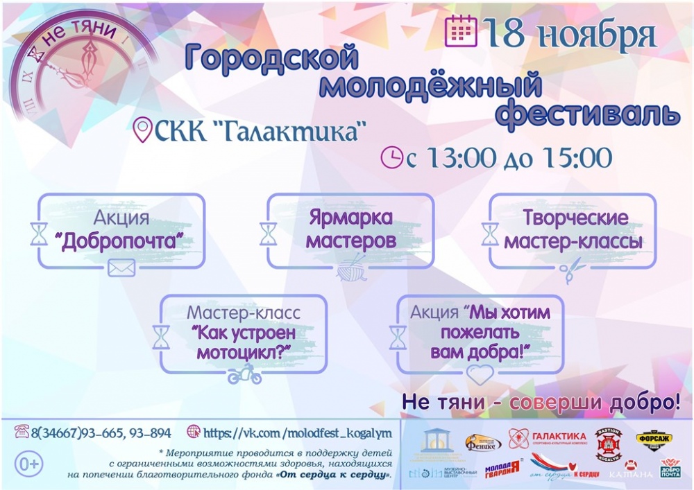 По инициативе молодёжи в период с 18 по 25 ноября 2018 года в Когалыме планируется проведение городского молодёжного фестиваля «Не тяни – соверши добро!».