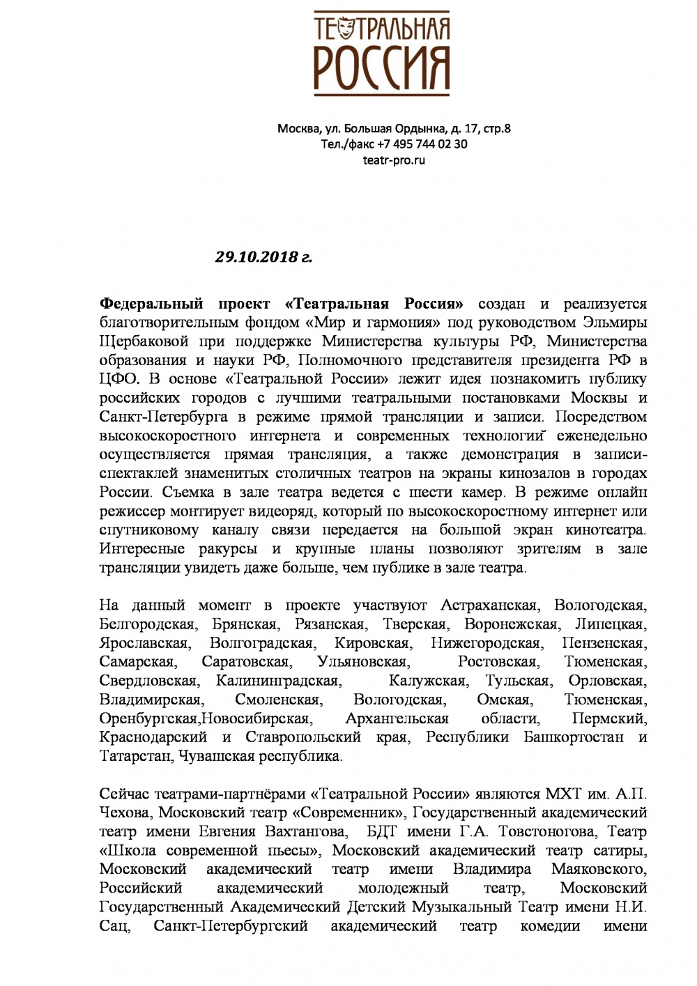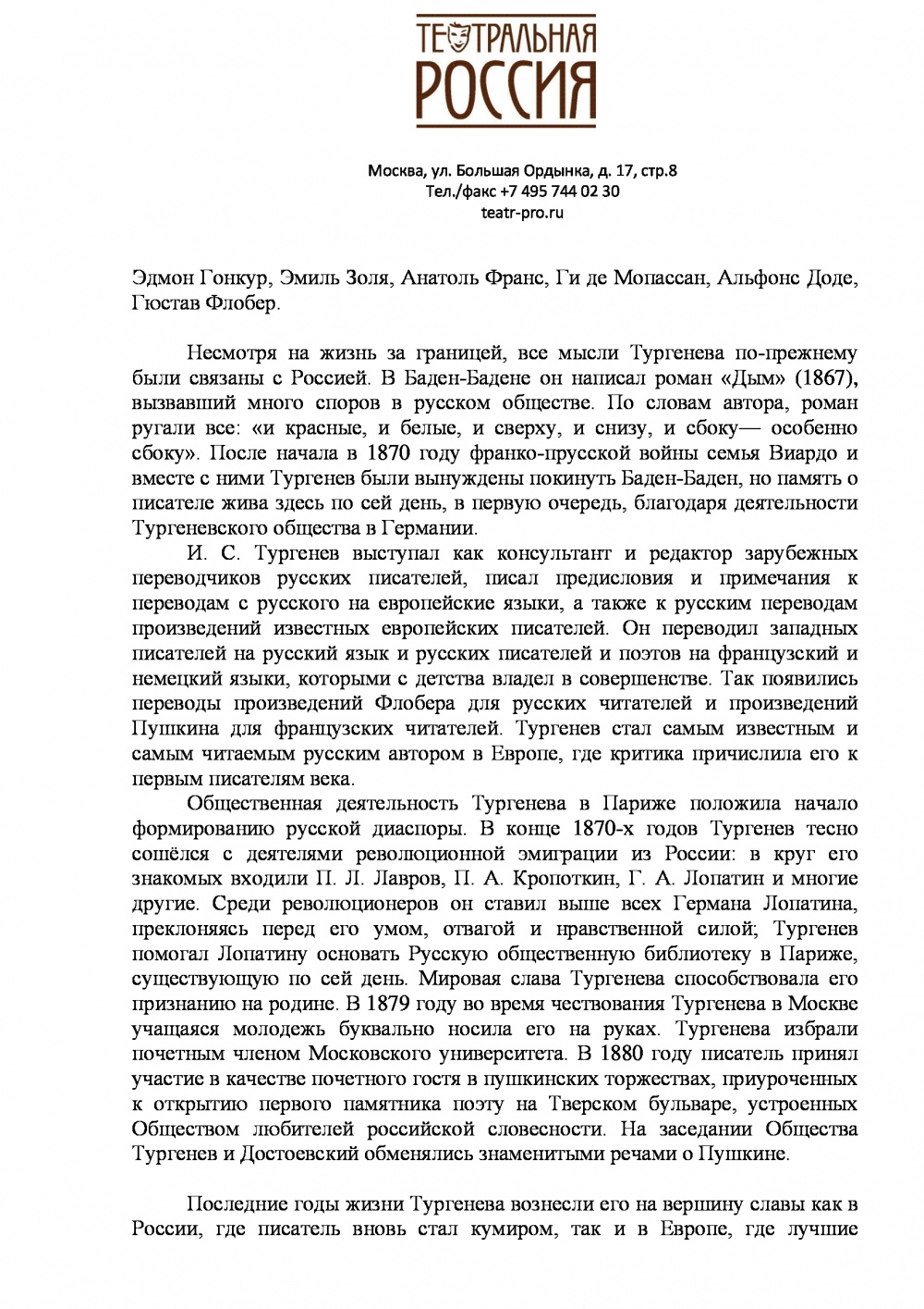Культурный благотворительный проект «Тургенев. Сегодня!» создан с использованием гранта Президента Российской Федерации на развитие гражданского общества, при поддержке Министерства культуры РФ и компании «Газпром трансгаз Москва», благотворительных фондов «Мир и Гармония» и «Культурные сезоны», в рамках проекта «Театральная Россия».