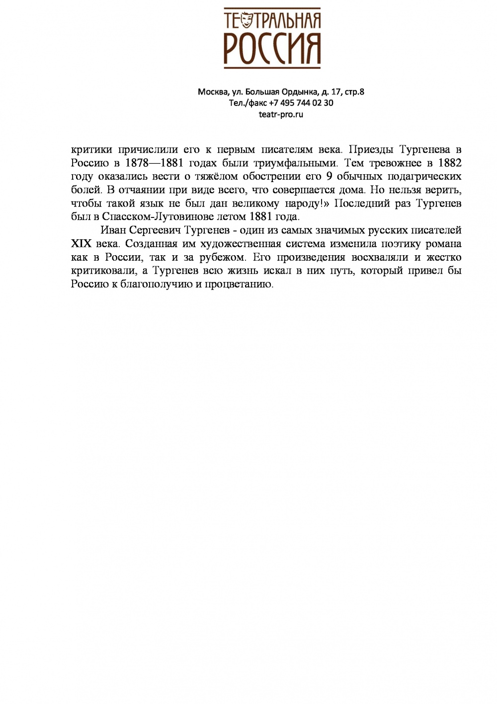 «Тургенев. Сегодня!» – это спектакль-посвящение Ивану Сергеевичу Тургеневу в канун его 200-летнего юбилея.