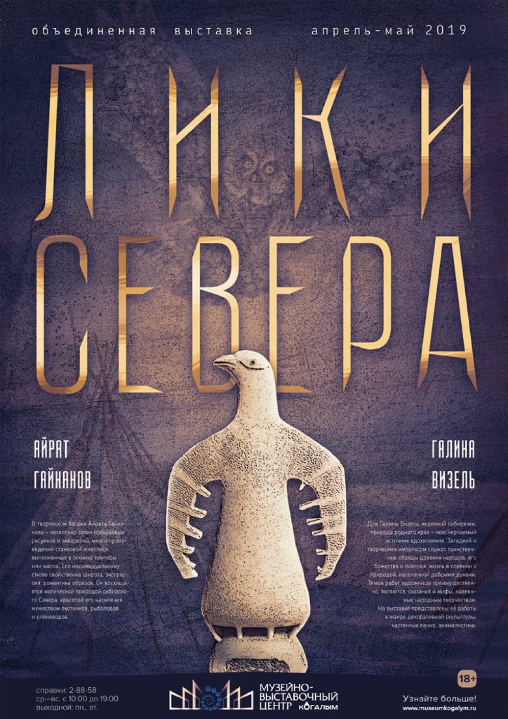 19 апреля 2019 года в музейно-выставочном центре состоится открытие выставки «Лики Севера», объединившей двух авторов –  Айрата Даяновича Гайнанова и Галину Михайловну Визель.