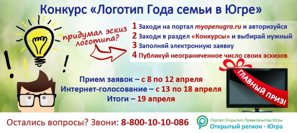 Конкурс «Логотип Года семьи в Югре» объявлен в округе. Югорчане могут предложить неограниченное число эскизов логотипа, а автор самого лучшего – станет обладателем нового телевизора.
