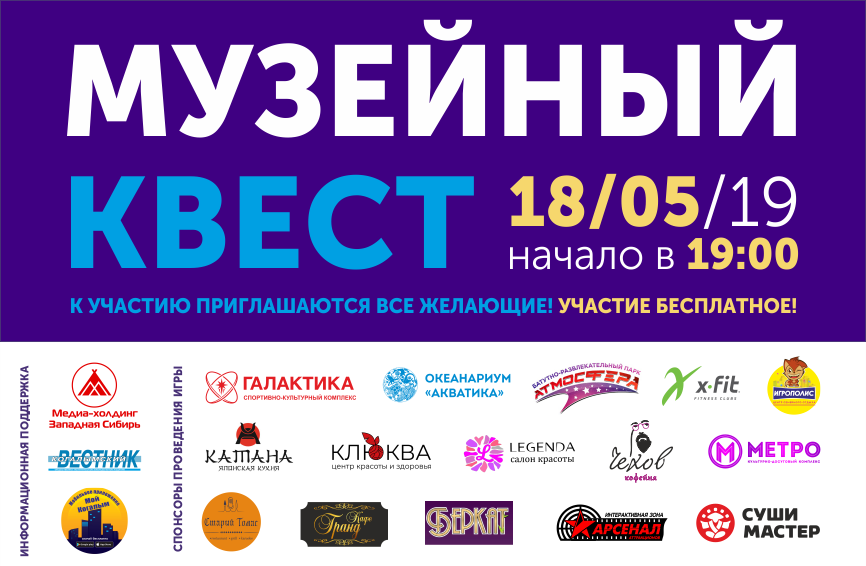 18 мая 2019 года в 19:00 в музейно-выставочном центре состоится ежегодная интеллектуально-тактическая игра «Музейный квест», которая является, пожалуй, самым ожидаемым событием в рамках акции «Ночь музеев».