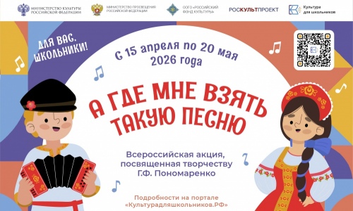 С 15 апреля по 20 мая 2026 года в рамках межведомственного культурнообразовательного проекта «Культура для школьников» пройдет всероссийская акция «А где мне взять такую песню», посвященная творчеству Народного артиста СССР, композитора Григория Пономаренко.