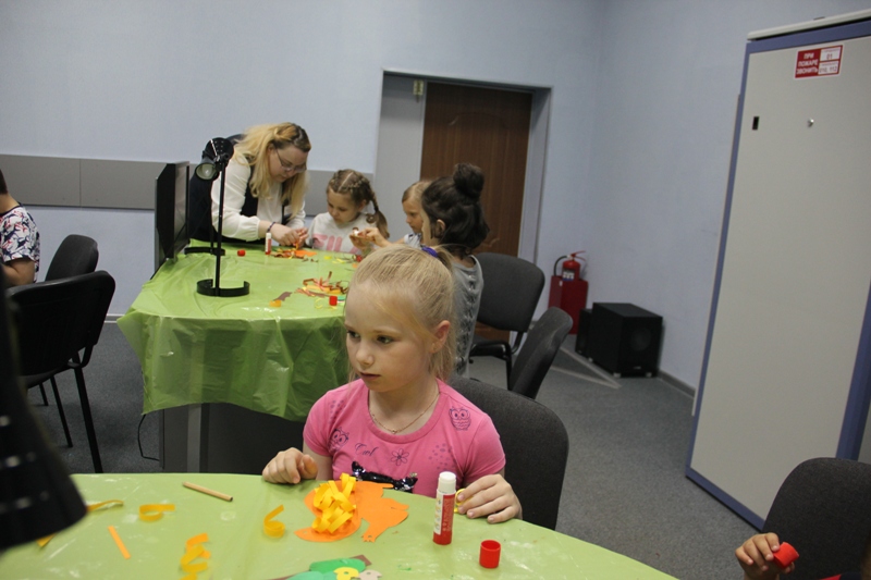 Встреча завершилась мастер-классом по изготовлению панно «Белка на ветке». Ребятам пришлось потрудиться, создавая пушистый беличий хвост из объемных элементов в виде бумажных завитков.
