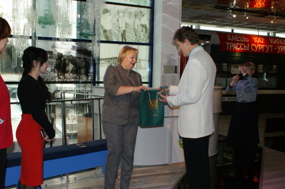 После экскурсии с Сергеем Сергеевичем встретились Председатель Думы Когалыма Алла Юрьевна Говорищева, начальник Управления культуры, спорта и молодежной политики Алина Айратовна Логинова, директор музейно-выставочного центра Ирина Ивановна Куклина. В память о посещении нашего города и музейно-выставочного центра, Сергею Шейко были вручены памятные сувениры.