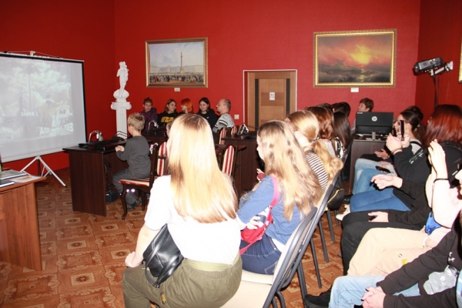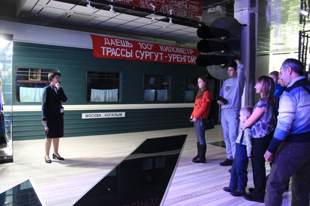 Далее для экскурсантов состоялось виртуальное погружение в эпоху соцреализма, которое стало возможным благодаря ресурсу медиатеки виртуального филиала Русского музея. Участники встречи познакомились с разделом медиатеки «Гимн труду», а оркестровая сюита Георгия Свиридова «Время, вперед!» задала динамичный ритм мероприятию, внесла ностальгические нотки, напомнив взрослой части аудитории о годах их молодости, об эпохе пятилеток, трудовых подвигов и великих достижений. Кстати рассказ о советской эпохе пришелся по душе и юным когалымчанам: они увлеченно слушали про интересные факты ушедшей эпохи и знакомились с атрибутами того времени.