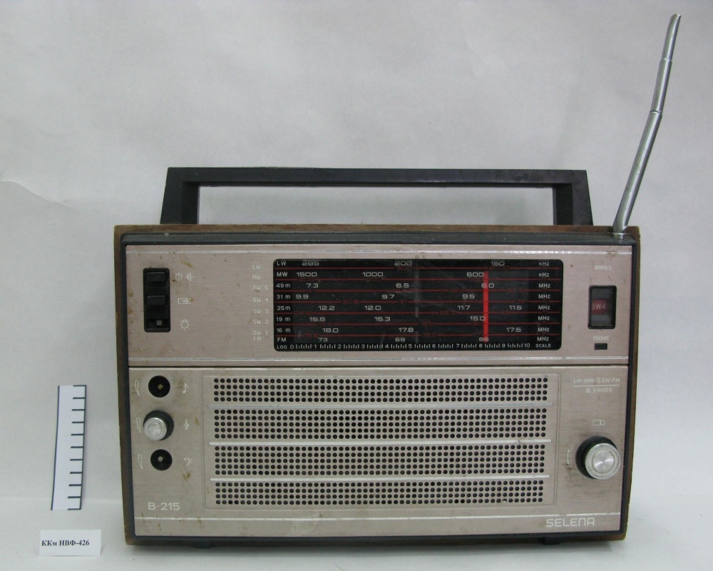 Хранящийся в фондах Музейно-выставочного центра радиоприёмник "Selena В-215" произведён, скорее всего, в начале 1990-х гг., уже после распада Советского Союза: вместо привычной экспортной маркировки MADE IN USSR на задней крышке приёмника стоит MADE IN REPUBLIK BELARUS.