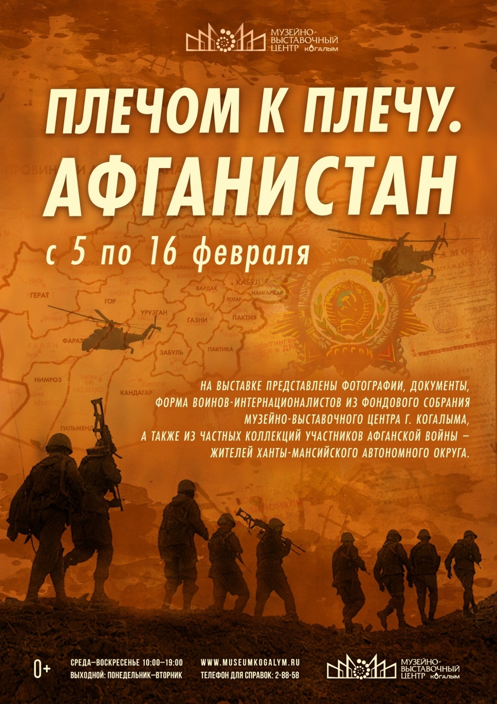 Друзья, с 5 по 16 февраля 2025 года в Музейно-выставочном центре начнёт свою работу выставка «Плечом к плечу. Афганистан», посвящённая подвигу советских воинов-интернационалистов.