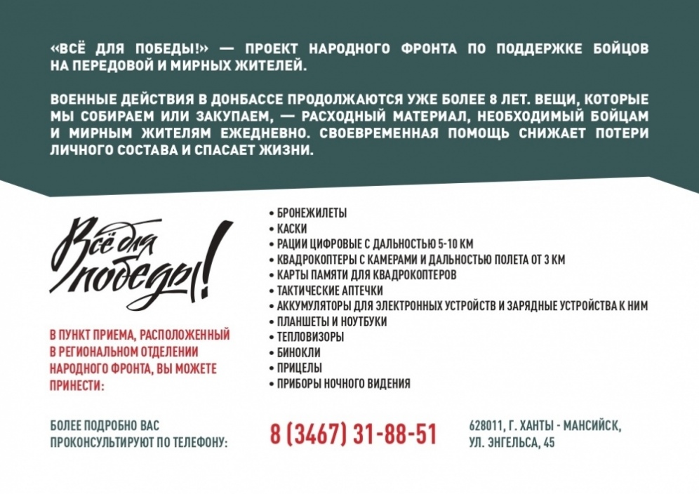 «Все для победы!» – проект по поддержке бойцов и мирных жителей