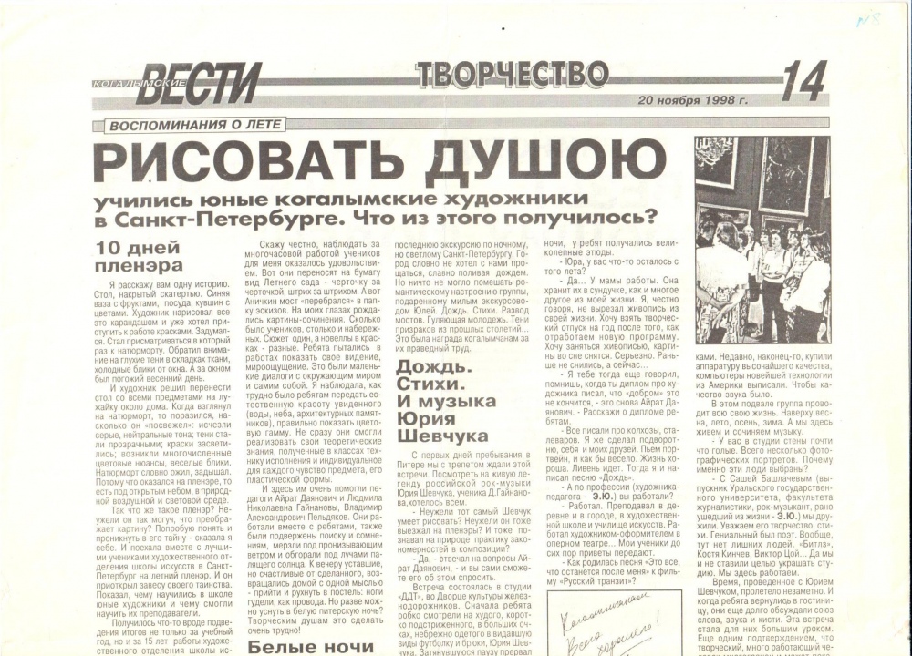 Главной особенностью сегодняшнего поста являются уникальные вырезки из газет, хранящие свидетельства о жизни и творчестве Айрата Даяновича. Эти редкие публикации позволят ещё раз почувствовать важность его вклада в искусство и культуру. Читатель узнаёт о новых выставках, о знакомстве публики с лучшими произведениями автора, а также о значительных событиях его творческой биографии.