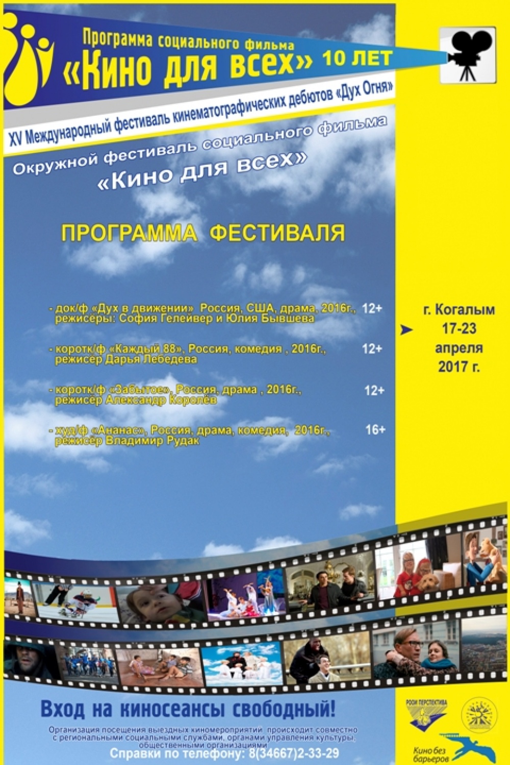 Окружной фестиваль социального фильма «Кино для всех» проходит в апреле 2017 года при поддержке: