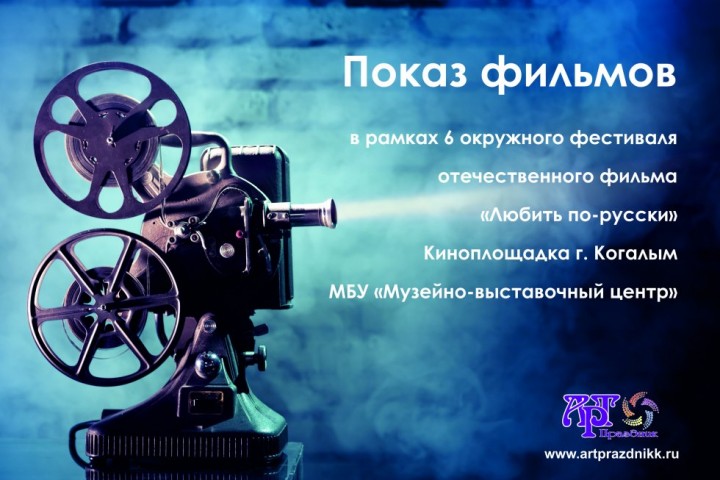 Киноплощадка - г. Когалым МАОУ «СОШ № 1», МАОУ «СОШ № 7», МБУ «МВЦ», МЦ «Метро». Вход свободный.