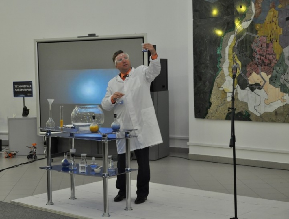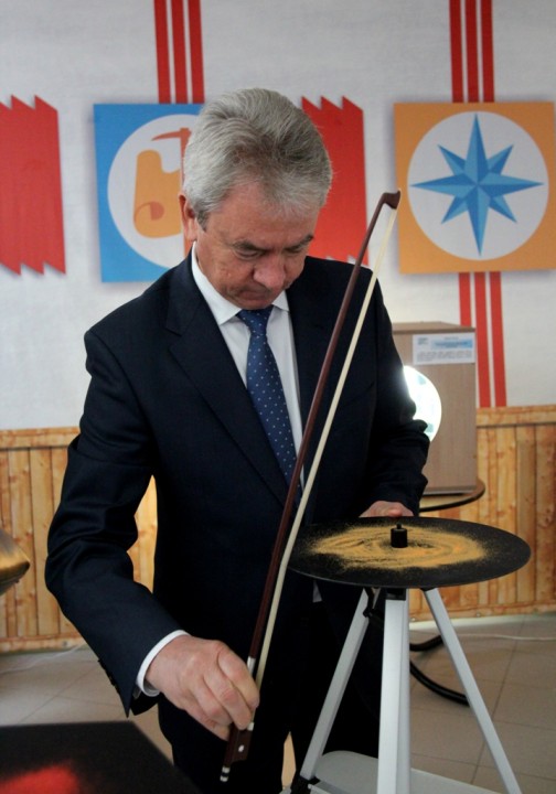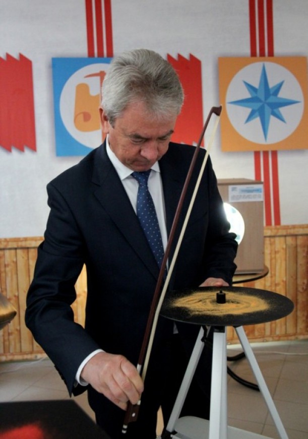Музейно-выставочный центр г. Когалыма представлял «Физическую лабораторию. Кафедру физики». Зрители смогли познакомиться с принципами действия аэротрубы, узнали, как и кем была создана голограмма, увидели роторный гироскоп, зеркальный куб. Особенный интерес у посетителей вызвали зрительные иллюзии и фигуры Хладни (рисунки на песке, возникающие под действием звуковой волны).