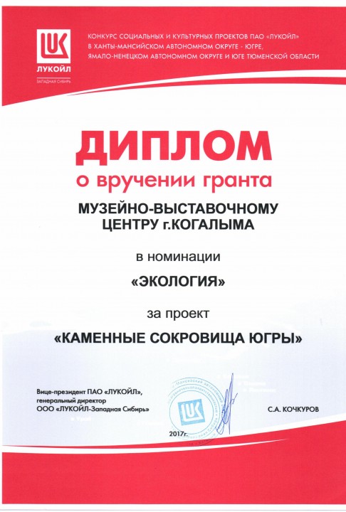 МБУ «Музейно-выставочный центр» уже не первый год принимает активное участие в данном конкурсе. В 2017 году сотрудник музея стал победителем конкурса в номинации «Экология» с проектом «Каменные сокровища Югры».