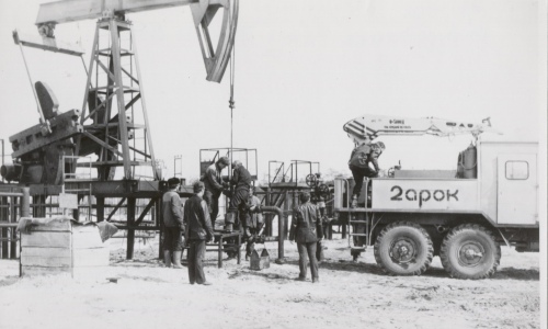 Впервые к тому месту, где будет Когалым, прилетели на вертолёте, ориентируясь по карте. Срубили две сосны, установили флаг.