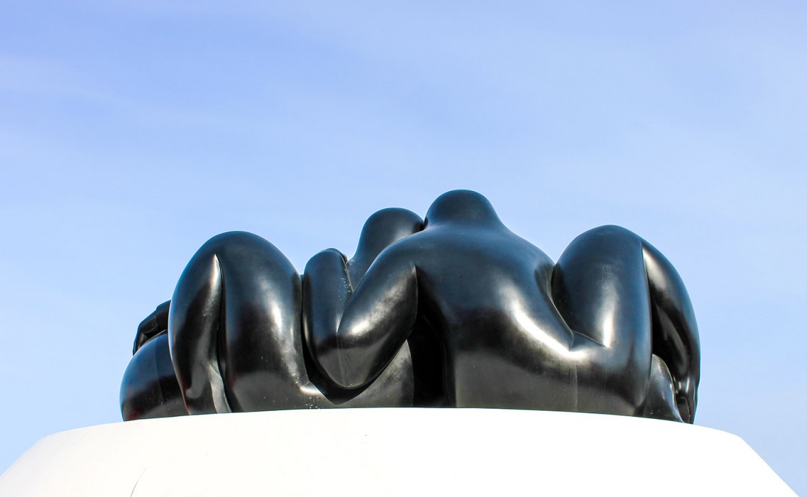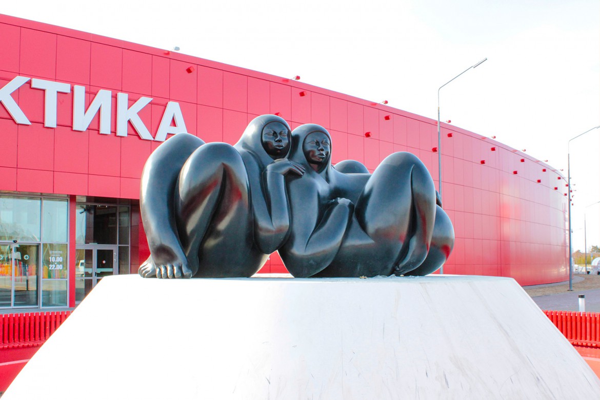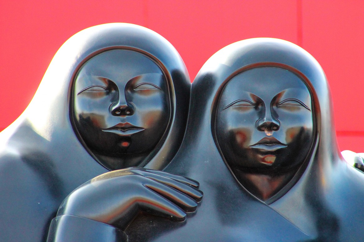 Автор Заключенные в бронзу с черной патиной две женщины символизируют счастье и бесконечность.