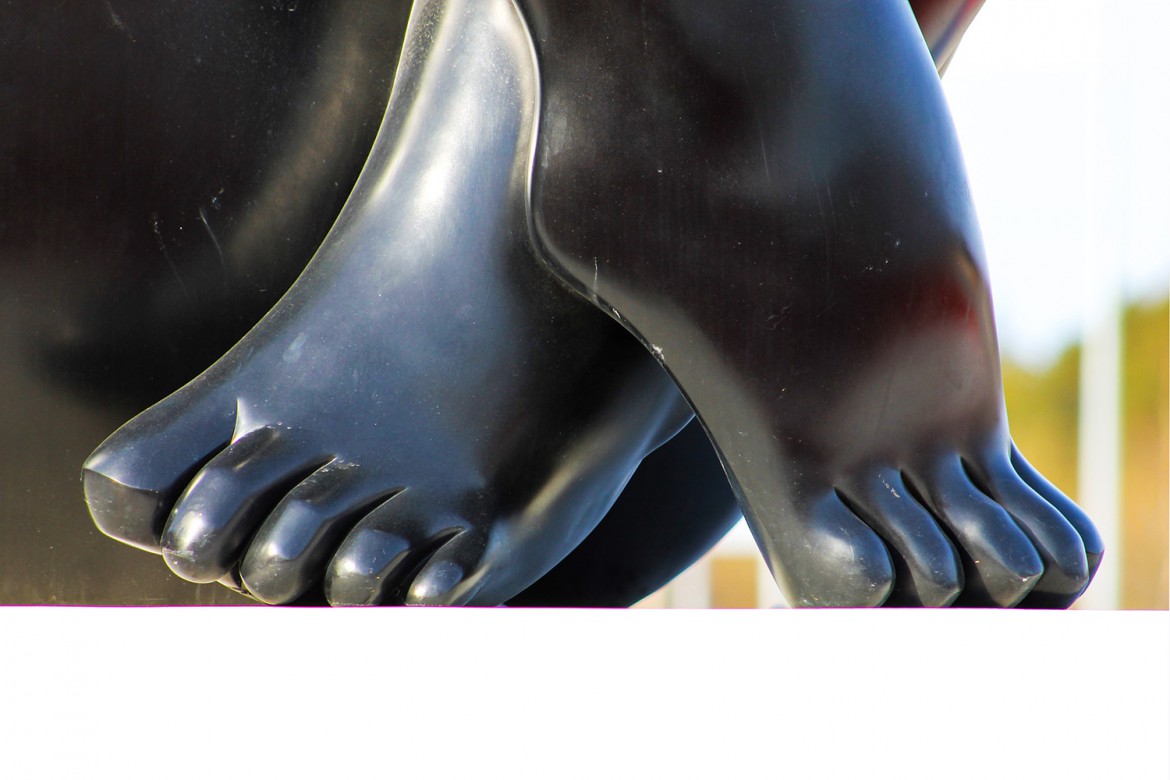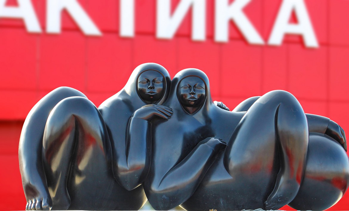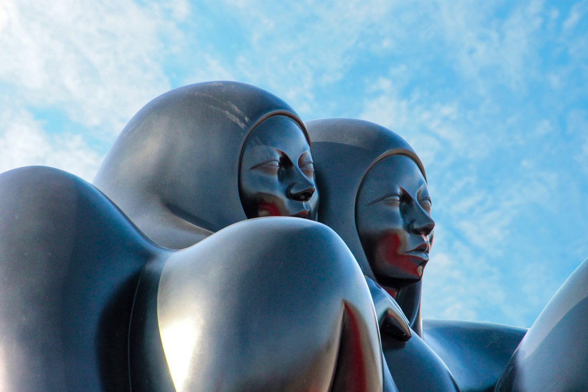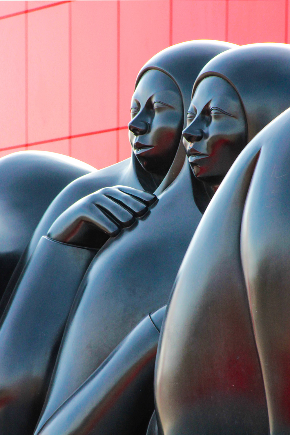 Автор Заключенные в бронзу с черной патиной две женщины символизируют счастье и бесконечность.