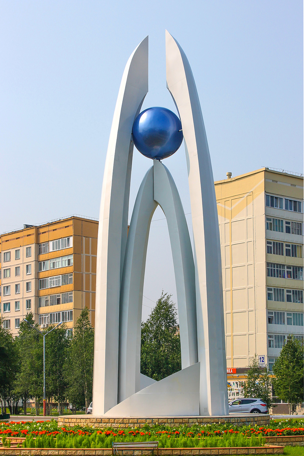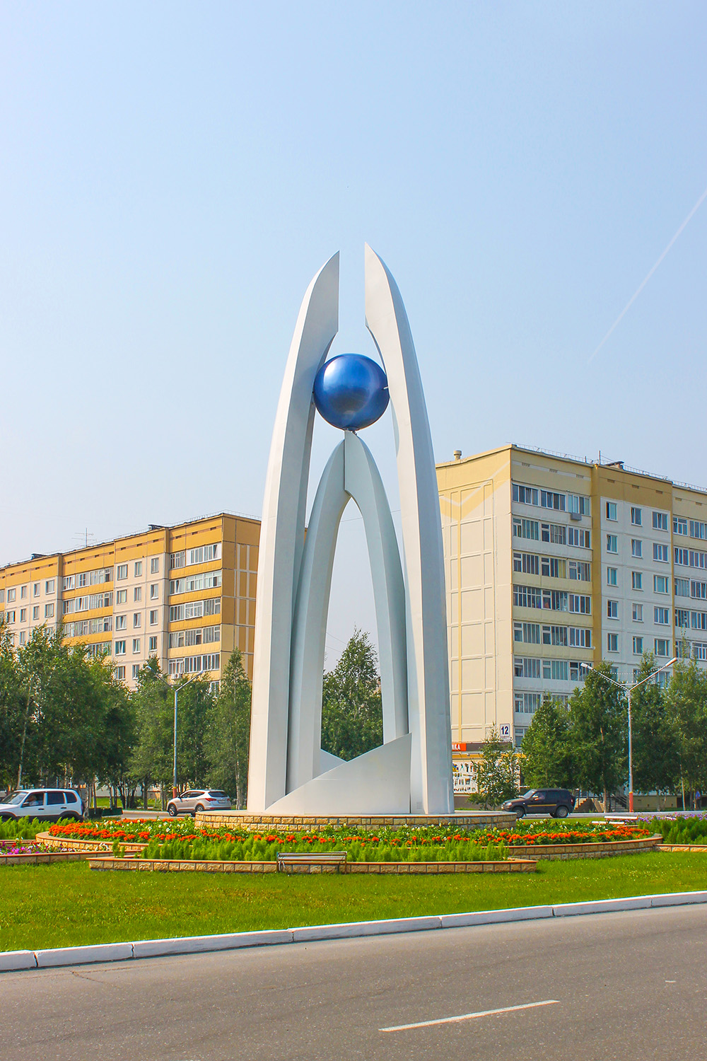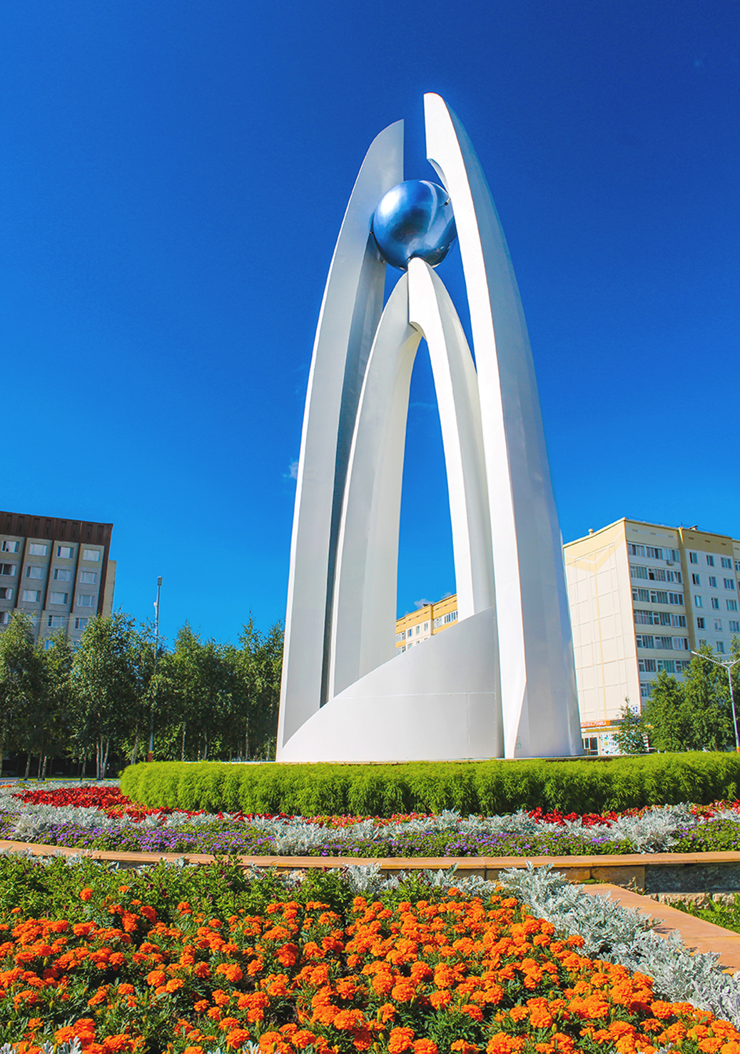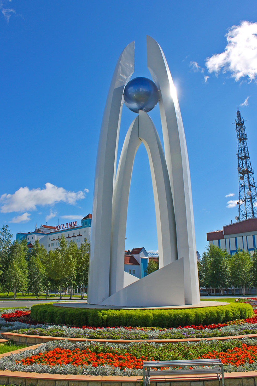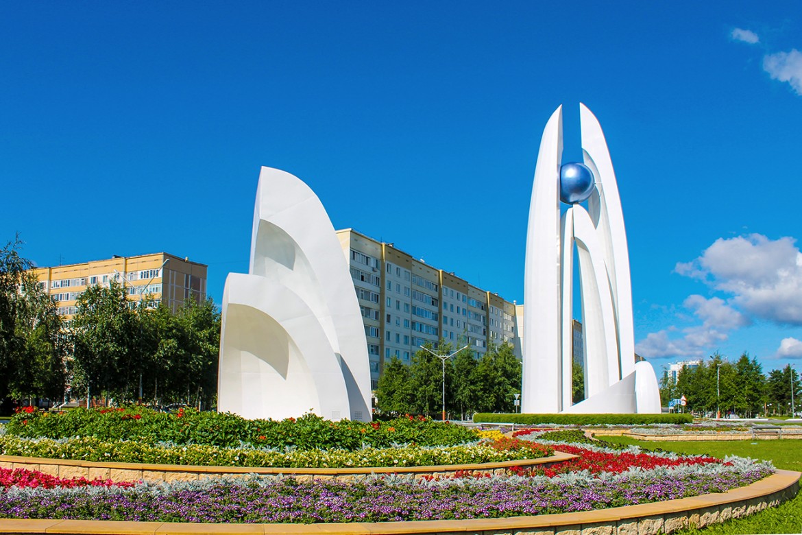 Данная скульптурная композиция символизирует успехи Когалыма в социально-экономическом развитии, гармоничную планировку и чистоту.