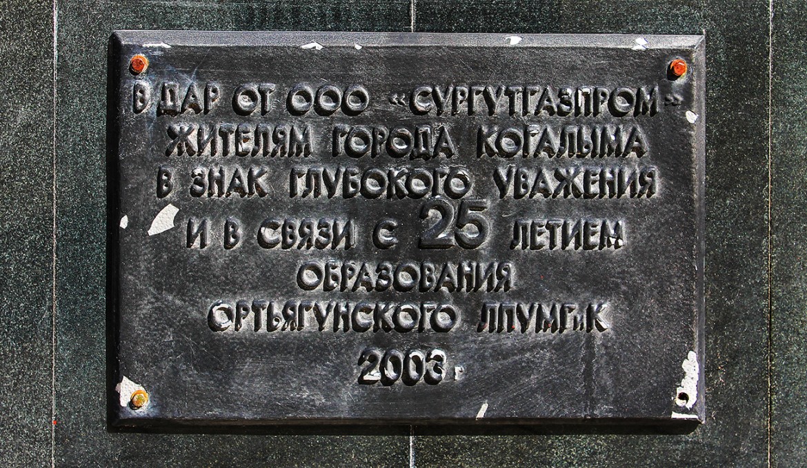 Стелла - дар от ООО «Сургутгазпром» жителям Когалыма, в знак уважения, признательности и в связи с 25-летием образования Ортьягунского ЛМПУМГ и К.