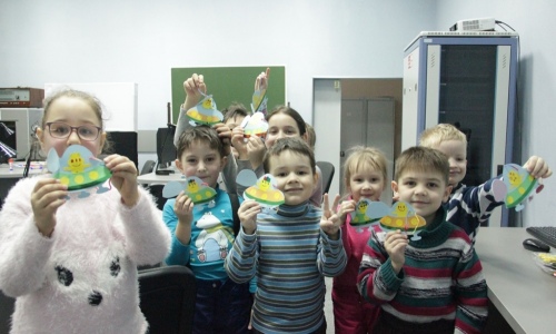 12 апреля 2019 года на базе информационно-образовательного центра «Русский музей: виртуальный филиал» для воспитанников детского сада «Чебурашка» корпус 2 и для учащихся третьего класса средней образовательной школы № 7 прошло занятие по теме «Космос в народном искусстве».